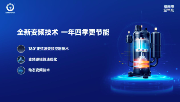 關(guān)注核心技術(shù)至關(guān)重要。紐恩泰的動(dòng)態(tài)變頻技術(shù)實(shí)現(xiàn)機(jī)組輸出在30%-100%無級(jí)調(diào)節(jié)智能升降頻,可以根據(jù)運(yùn)行環(huán)溫、水溫、室溫等實(shí)現(xiàn)智能調(diào)頻,恒溫運(yùn)行。而其噴氣增焓技術(shù)更是在超低溫環(huán)境下保持高效制熱的關(guān)鍵。