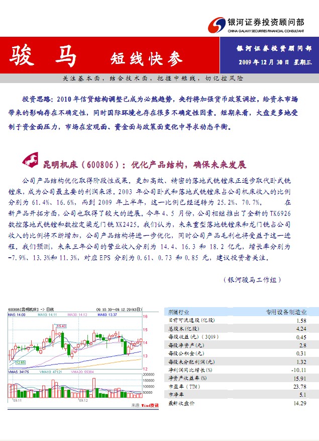 12月30日銀河證券駿馬(短線快參)