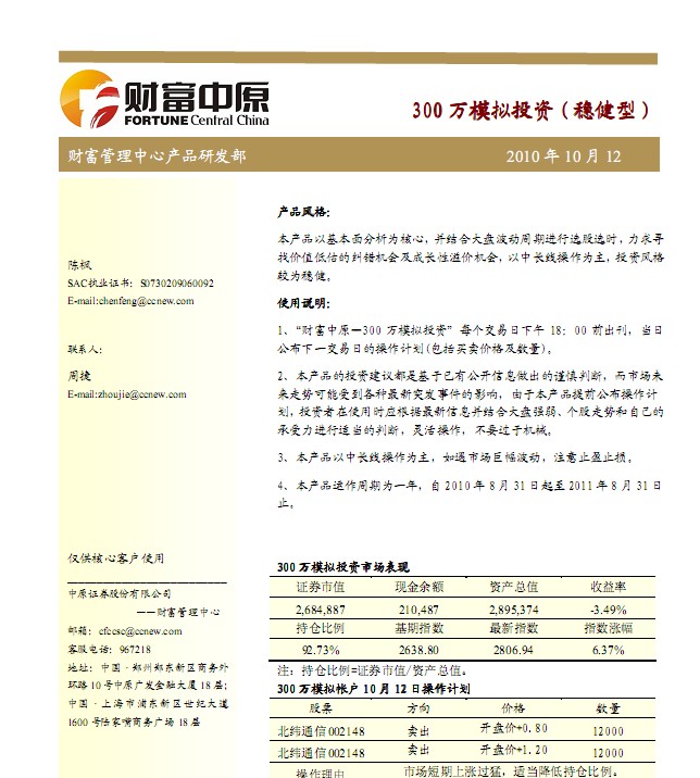 10月12日中原證券50萬(wàn)模擬盤(pán)