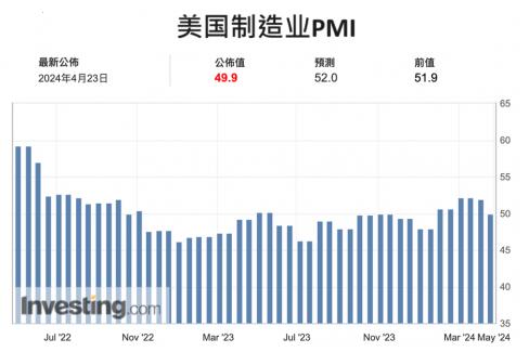 首先,我們先來看一下PMI(采購經(jīng)理人指數(shù))。PMI是衡量制造業(yè)和非制造業(yè)活動水平的重要指標(biāo),通常被視為經(jīng)濟(jì)健康狀況的重要預(yù)測指標(biāo)之一。4月份的制造業(yè)采購經(jīng)理人指數(shù)由51.9跌至49.9,創(chuàng)四個月低點且低于50這一個榮枯標(biāo)準(zhǔn),并為今年以來首度萎縮,也遠(yuǎn)低于市場預(yù)期的52。