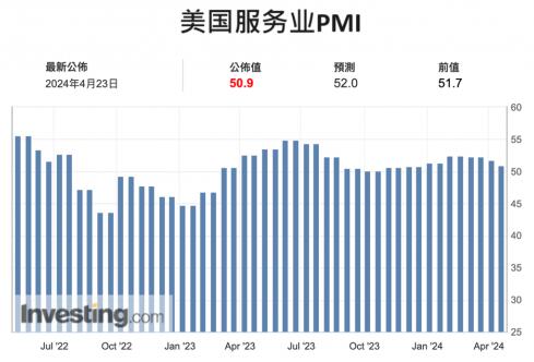 此外,由標(biāo)普全球發(fā)布的4月份美國服務(wù)業(yè)PMI從前值的51.7下滑0.8至50.9,創(chuàng)去年8月以來最大降幅。不過由于指數(shù)高于50榮枯關(guān)鍵分水嶺,所以CPT Markets分析師認(rèn)為目前行業(yè)活動還是持續(xù)在擴(kuò)張。不過,CPT Markets分析師有點擔(dān)心美國經(jīng)濟(jì)活動在第二季初失去動力,因為4月份新業(yè)務(wù)流入出現(xiàn)六個月來的首次下降,所以隨著市場對前景的擔(dān)憂加劇,因此預(yù)期企業(yè)的未來的產(chǎn)出可能降至五個月低點。