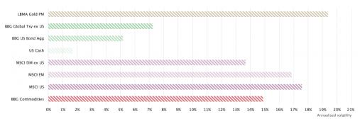 而若我們根據(jù)世界黃金協(xié)會(huì)的數(shù)據(jù),在過去約50年中,黃金的年化波動(dòng)率為19.4%,遠(yuǎn)高于摩根士丹利資本國際新興市場指數(shù)、彭博商品指數(shù),甚至超過了標(biāo)準(zhǔn)普爾500指數(shù)的15%年化波動(dòng)率。那么,是什么樣的原因使得黃金的波動(dòng)性如此高呢?