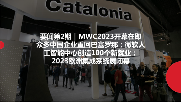 要聞第2期|MWC2023開幕在即 眾多中國企業(yè)重回巴塞羅那;微軟人工智能中心創(chuàng)造100個新就業(yè);2023歐洲集成系統(tǒng)展閉幕