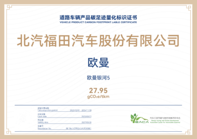 行業(yè)首家!福田歐曼獲重卡碳足跡量化標識,加速行業(yè)低碳步伐